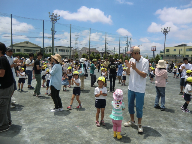 8日(日)、わんぱくホリデー(運動会)が開かれました。雨のために一日延びてしまいましたが、当日はよいお天気に恵まれ、青空の下で元気いっぱい躍動する子どもたちの姿が印象的でした。最初の運動会となった赤帽の年少さんも暑い中を最期までよくがんばることができました。みどり帽の年中さんはクラス団体競技に意欲的に取り組み、お父さんやお母さんとの楽しいひと時を過ごすことができました。