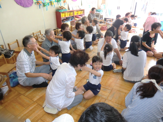 13日(土)に園に祖父母の皆さんをお迎えして「ふれあいの日」参観会が行われました。この日を楽しみに遠く島根からおいでいただいた方もあり、本当にうれしかったです。おじいちゃん、おばあちゃんのお孫さんを見る目は暖かな暖炉のよう…。目を細めてお孫さんの一挙手一投足に微笑み、拍手を送ってくださるお姿にこちらまで頬がゆるんでしまいます。そんな祖父母の皆さんの愛情をしっかりと肌で感じ、子どもたちは幸せそのものの笑顔で大満足の一日でした。「おじいちゃん、おばあちゃん、いつまでもずっとずっと元気でいてね! 子どもたちの心からの言葉です。