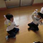 「みんなの心の中には悪い鬼はいないかな?」 節分を迎え、先週末、園内ではクラスで節分の会を行い、鬼退治の「まめまき」を行いました。豆菓子と一緒に飴やチョコも!子どもたちは大喜びで、用意した袋にたくさん詰め込んでいました。みんなの心の中にはニコニコ鬼がいっぱいになったようですね!