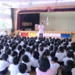 年長の子どもたちの卒園が迫ってきました。今まで一所懸命に取り組んできたJRC活動。その締めくくりとして、年長の子どもたちから年中、年少の子どもたちへ、団旗やバッジの引き渡しをしました。自分たちの後を受けて、4月からがんばってほしいという気持ちを込めての引き継ぎ式。年中、年少の子どもたちも旗やバッジを受け取り、どこかしら引き締まった表情を浮かべていたのが印象的でした。