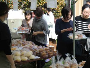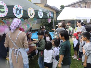 心配された天候も回復し、秋の日差しの下で保護者会主催のバザーが開かれました。担当役員さんやスタッフさんが用意してくださった一品献納バザーやゲームコーナー、綿菓子や飲み物のお店が大盛況。子どもたちにも大変楽しい一日となりました。お部屋で一緒に食事をするご家族もあり、昼のひとときを楽しんでいらっしゃったようでした。準備から販売、片付けまで、係の保護者の皆さん、本当にお疲れ様でした。