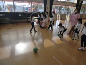 昨年から新型コロナウィルスの感染拡大によって延期となっていた豊田っ子まつり。今年になって再度オミクロン株の流行により全体でのおまつりやゲーム遊びは残念ながら中止せざるを得なくなりました。しかし、保護者会の皆さんが一所懸命に準備してくださったおみやげを無駄にすることなく、また少しでも子どもたちにゲームで楽しんでほしいと願い、園内で子どもたちのゲーム遊びの会を企画しました。クラス入れ替え制でホールに集まって、職員がお世話するゲームコーナーでひと遊び。歓声があがり、子どもたちも大喜びしてくれてうれしかったです。そして保護者会からのお土産もいただき、大満足の子どもたちでした。