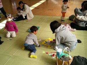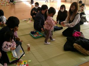 未就園児つくしんぼの会が開かれました。今回は3月を前に親子で『つるし雛』作りに挑戦です。作り方のレクチャーを受けていよいよ製作。親子での会話を楽しみながら少しずつ作業を進めて、可愛いつるし雛が完成しました。おうちに持ってかえって飾ってみてくださいね。